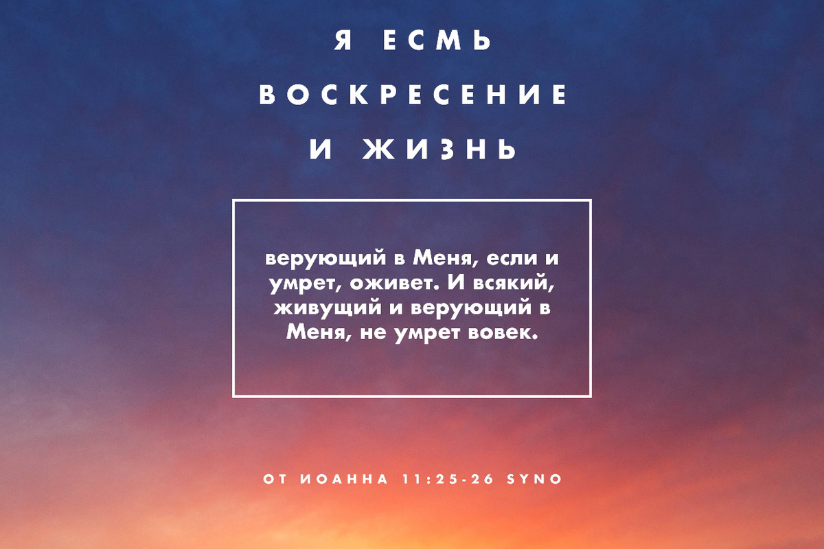 «Я есмь воскресение и жизнь; верующий в Меня, если и умрет, оживет; и всякий живущий и верующий в Меня не умрет вовек».