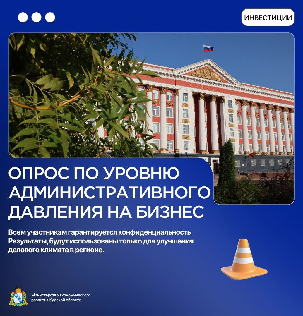 Министерство экономического развития Курской области предлагает предпринимателям принять участие в опросе, который позволит оценить уровень административного давления на бизнес при взаимодействии с контрольными (надзорными) органами. Опрос займет всего несколько минут, конфиденциальность ответов гарантируется. Результаты будут использованы только для улучшения делового климата в регионе. ➡Пройдите опрос по ссылке: https://clck.ru/3EBpiV