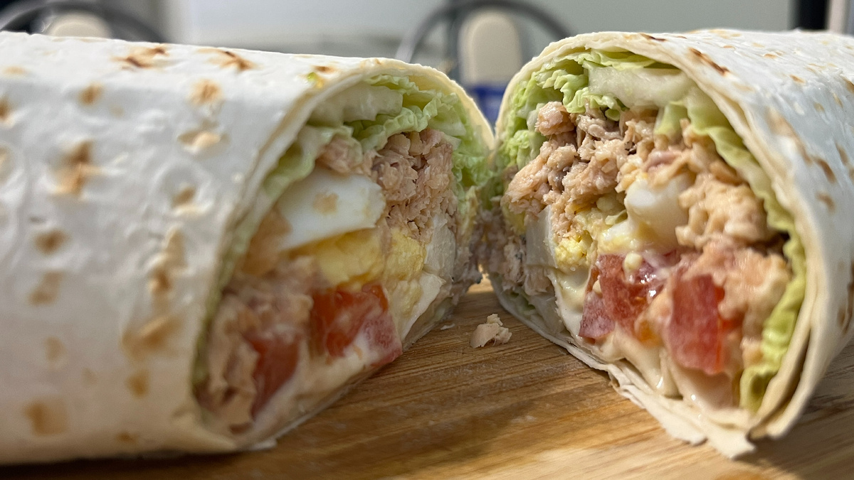 Далее, на лаваш выкладываем пекинскую капусту, рыбку, измельченное вареное яйцо, порезанный помидор (можно заменить на свежий огурец). Для соуса берем греческий йогурт 2 столовые ложки и 1/2 столовой ложки горчицы (если любите поострее, можно больше добавить). Заправляем соусом нашу шаурму, закручиваем и наслаждаемся 😋