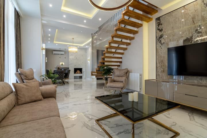 Забегая вперед, скажу, что двухуровневая квартира очень удобна для семьи со взрослыми детьми. Можно отдыхать в приватной зоне, даже когда молодежь устраивает посиделки в большой гостиной.