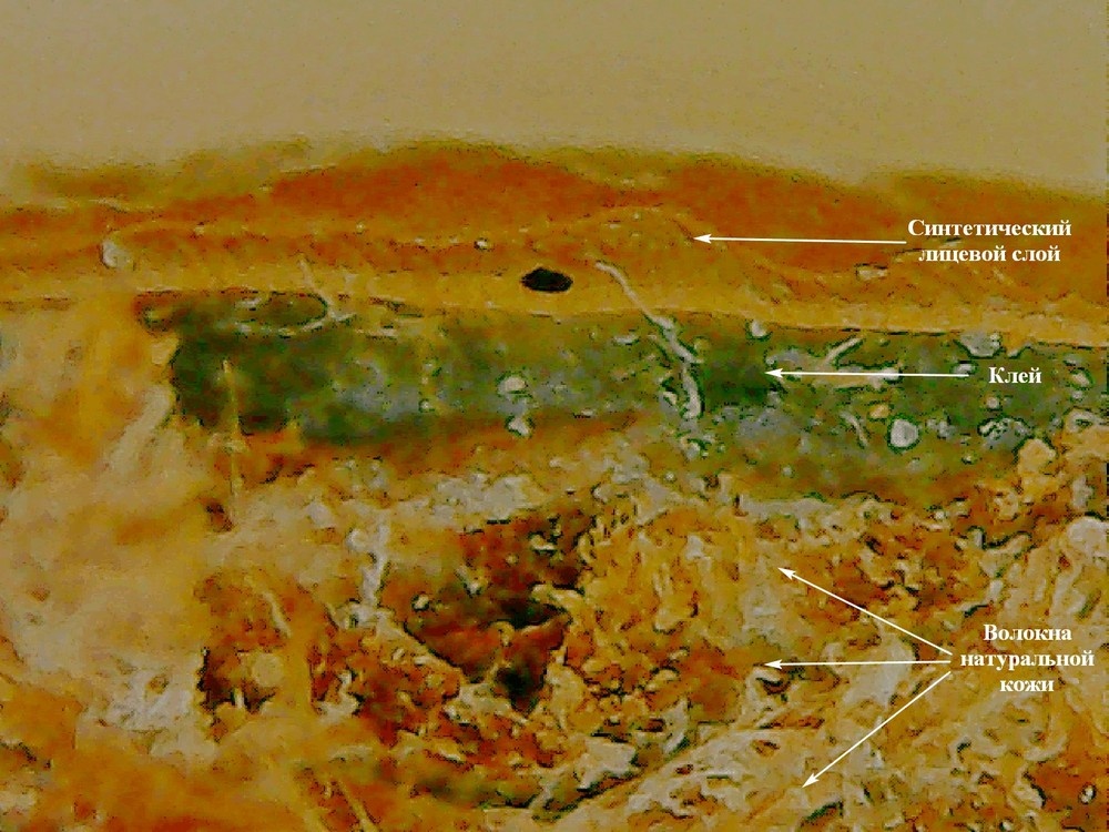 Вообще, что такое кожа? Большая Российская Энциклопедия нам говорит: КО́ЖА - материал, вырабатываемый из шкуры животного. КО́ЖА ИСКУ́ССТВЕННАЯ, полимерный (обычно композиционный) материал, по внешнему виду и некоторым свойствам близкий к натуральной коже. На одном из маркетплейсов потребитель приобрел сумку женскую повседневную заявленной торговой марки «Chloe». В описании сумки была указана информация о том, что сумка изготовлена из натуральной кожи. Какой-либо маркировки на сумке, её упаковке нет. Потребитель усомнился в достоверности информации о том, что сумка изготовлена из натуральной кожи и обратился к нам с целью определения вида фактического материала. Экспертом проведено комплексное исследование с использованием инструментального (микроскопического), органолептического, опытного методов (сжигания), в результате которого установлено: - материал состоит из двух слоев, соединенных между собой клеевым веществом. Причем нижний слой - это волокн
