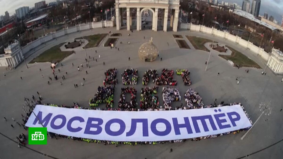 [ Смотреть видео на сайте НТВ ] Более 2,5 тысячи москвичей выстроились в виде слов «Десять лет добра». Столичные волонтеры провели массовый флешмоб. Его приурочили ко Дню добровольца и десятилетию ресурсного центра «Мосволонтёр». В акции приняли участие больше 2,5 тысячи москвичей. Они выстроились в виде слов «Десять лет добра» и растянули масштабное полотно с надписью «Мосволонтёр» у главного входа ВДНХ. Участниками флешмоба стали те люди, которые регулярно делают добрые дела. Волонтеры оказывают помощь благотворительным фондам, медицинским учреждениям и людям пожилого возраста. Александр Левит, директор ресурсного центра «Мосволонтёр»: «В Москве уже более 1,3 миллиона человек, кто выбрал для себя путь служения и пришел к добровольческой деятельности. Таких людей становится все больше, и мы очень рады, что Москва — по-настоящему столица добрых дел. Каждый москвич — это добрый человек». Чтобы стать волонтером, нужно зарегистрироваться на сайте mosvolonter.ru. [ Смотреть видео на сайте