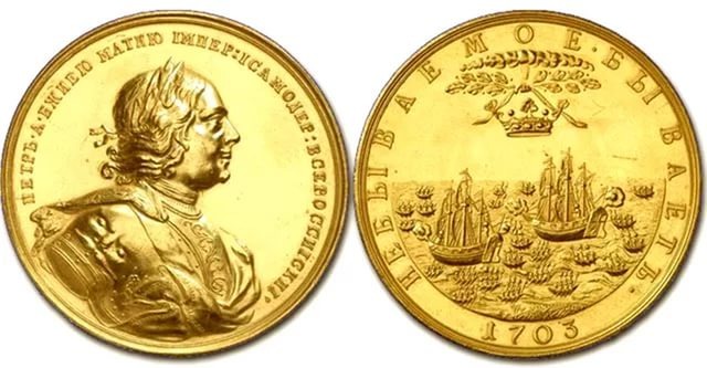 За взятие двух шведских кораблей в устье Невы с надписью "Небывалое бывает", 1703 года. "За победу под Калишем 16 октября 1706 г." "За победу под Лесной 28 сентября 1708 г." "За Полтавскую баталию", 1709 год. "За победу при Гангуте", 1714 год. "За победу при Куннерсдорфе над пруссаками. 1759" 1760 год. "За победу при Чесме", 1770 год. "За победу при Кагуле", 1770 год. "За взятие крепости Очаков", 1778 год. Медаль за победу в первом Роченсальмском сражении с надписью "За храбрость на водах финских 13 августа 13 августа 1789 г." Подписывайтесь на наш канал и оставляйте свои комментарии.