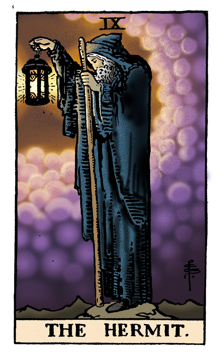 Отшельник астрологически соответствует знаку зодиака Дева,а это знак стремления к совершенству,мышления,перфекционизма,чистоты,скромности,терпения,смирения,контроля,долга,работы,каждодневного труда и служения.