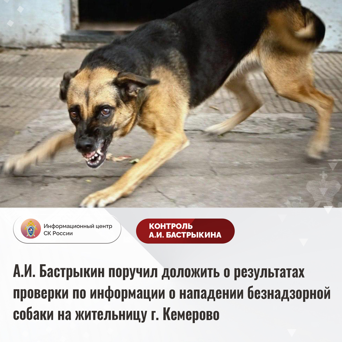 А.И. Бастрыкин поручил доложить о результатах проверки по информации о нападении безнадзорной собаки на жительницу г. Кемерово