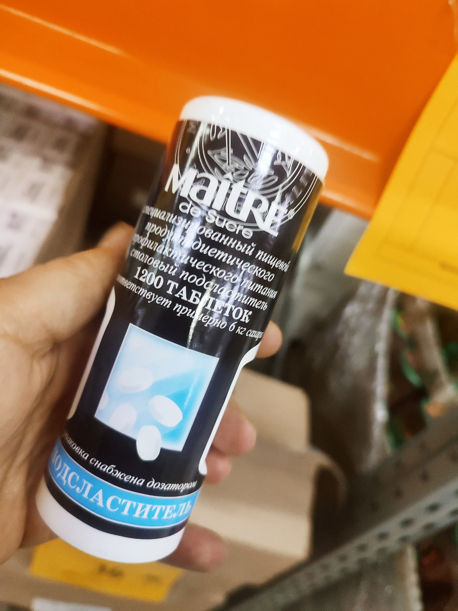 Отечественный специализированный пищевой продукт диетического профилактического питания. Если кратко - столовый заменитель сахара. Совсем коротко - подсластитель) В упаковке 1200 таблеток, эквивалентных 6 кг. сахара. Вот этот подсластитель я и покупаю всегда. Цена 144-90. Дешевле нигде не найдёте!))