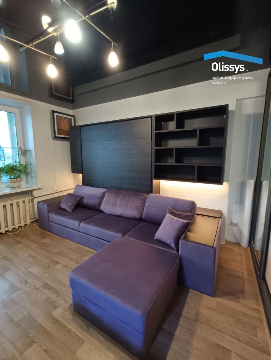 Комплект мебели Olissys LE – идеальная альтернатива, если квадратура квартиры не позволяет обустроить спальню и гостиную в разных комнатах
