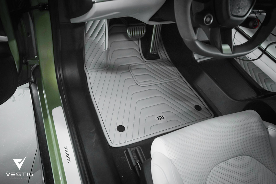 Отшили комплект ковриков для Xiaomi SU7. Cтрочка повторяет рисунок кресел, а оттенки перекликаются с цветом салона. Так же на каждый коврик были добавлены вышивки логотипа марки авто. Вообще с этим автомобилем плотно поработали наши мастера и большой отчет об этом есть на нашем сайте. Наши проекты: vestis.pro