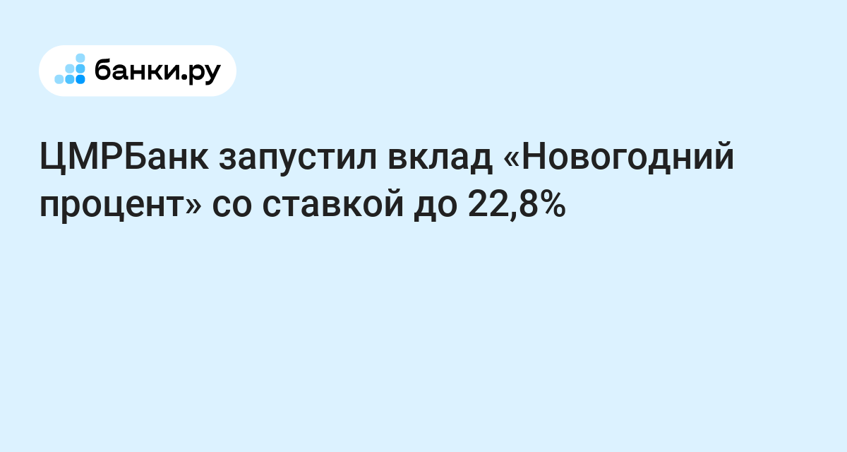 ЦМРБанк запустил вклад «Новогодний процент» со ставкой до 22,8%