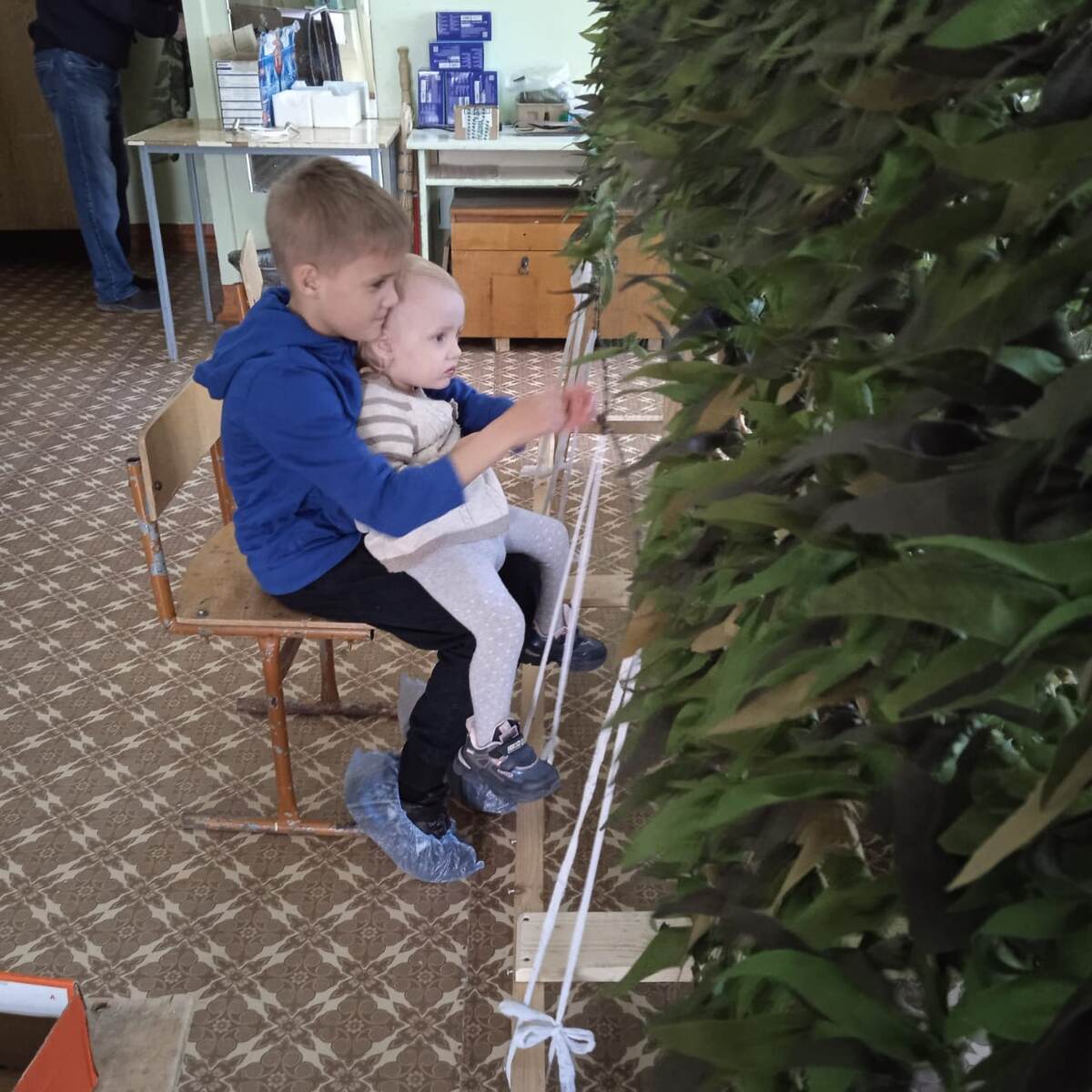 Мастерская в Доме детского творчества открылась 10 января этого года. Когда-то здесь занимался сын Светланы Салиховой, который теперь в должности командира артиллерийской бригады служит на СВО. Мать боевого офицера, руководитель волонтерской группы «СВОих не бросаем», попросила директора ДДТ Татьяну Семенову предоставить мастерскую для плетения маскировочных сетей. Татьяна Михайловна охотно согласилась и вскоре здесь вовсю закипела работа. Теперь сюда приходят школьники и преподаватели ДДТ, чтобы и их лоскутки, вплетенные в сеть, стали камуфляжной накидкой для маскировки наших военных, спасительным покрывалом для их боевых позиций, вооружения, военной техники, инженерных сооружений, огневых окопов и блиндажей. Плетуньи Татьяна Осипова и Любовь Кукаркина с радостью восприняли новость об открытии этой мастерской, так как живут неподалеку. Раньше им приходилось добираться до дома No 21 по улице Куйбышева, где размещается основной штаб волонтерской группы «СВОих не бросаем».