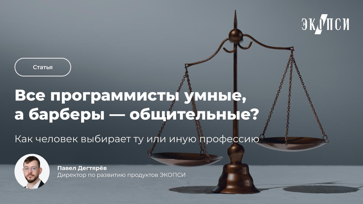 Делимся статьёй директора по развитию продуктов ЭКОПСИ Павла Дегтярёва, в которой он обозревает результаты одного из исследований факультета социологии Билефельдского университета в Германии и размышляет о том, как влияют интеллектуальные способности и личностные качества человека на его выбор профессии. «Наткнулся на статью, исследующую причины профессиональной стратификации – какие люди типично оказываются в той или иной профессии. Тема живая, постоянно провоцирует дискуссии про сравнительную роль генетики и воспитания, реальность меритократии или влияние социально-экономического положения семьи на будущий успех и т.д. Кажется, что есть очевидные ответы: в ракетной науке только люди с высоким IQ, там много зарабатывают, а IQ зависит почти только от генов. Но в этом исследовании много удививших меня находок: 1. Интеллект объясняет до 25% разницы в профессиях и позволяет строить чёткую “иерархию” профессий. Позиция в иерархии, судя по всему, зависит от “комплексности” работы: чем больш