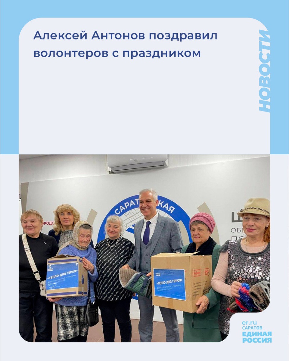 📆5 декабря в России отмечается День добровольца и волонтёра. Председатель Саратовской областной Думы Алексей Антонов отметил важность работы волонтеров. 💬«Порядка 170 тысяч жителей Саратовской области сегодня отмечают свой праздник - День добровольца и волонтёра. В России он появился в 2017 году, когда соответствующий указ подписал Президент России Владимир Владимирович Путин. Близко с волонтёрами мне довелось познакомиться во времена пандемии. Эти бесстрашные люди разносили продукты питания и лекарства пожилым людям, которые боялись выходить из дома. Вместе с коллегами-депутатами и представителями бизнеса мы привозили средства защиты и наборы к чаю для врачей, которые круглосуточно несли свою вахту в борьбе с опасной болезнью. В настоящее время тысячи волонтёров по всей Саратовской области занимаются изготовлением окопных свечей, плетут маскировочные сети, шьют тёплые вещи для бойцов. Всегда с удовольствием встречаюсь с этими людьми. Благодарю их за ту помощь, что они оказывают