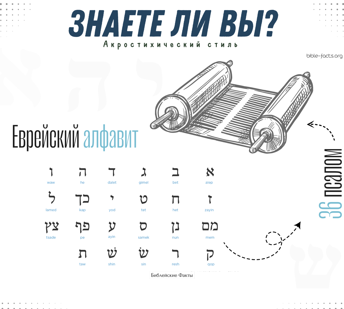 А вы знали, что 36 Псалом составлен так, что каждый стих открывается следующей буквой еврейского алфавита т.е. это алфавитный псалом (акростих).