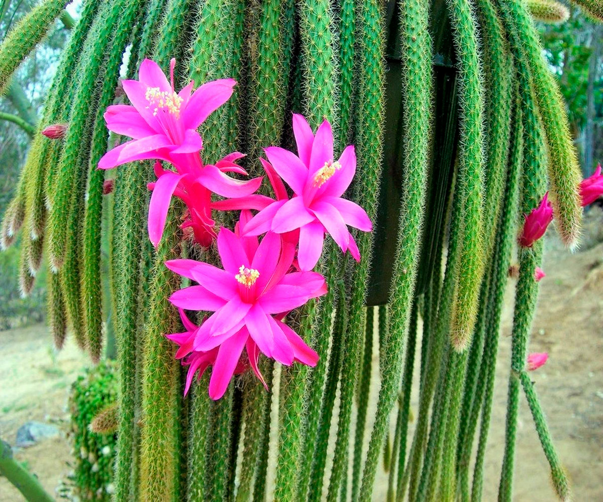 У других видов более твердые стебли, но тем не менее все они прекрасно смотрятся в подвесных корзинах и летом годятся для украшения балконов, лоджий и веранд. Цветки апорокактуса располагаются по всей длине его стеблей и появляются уже ранней весной.