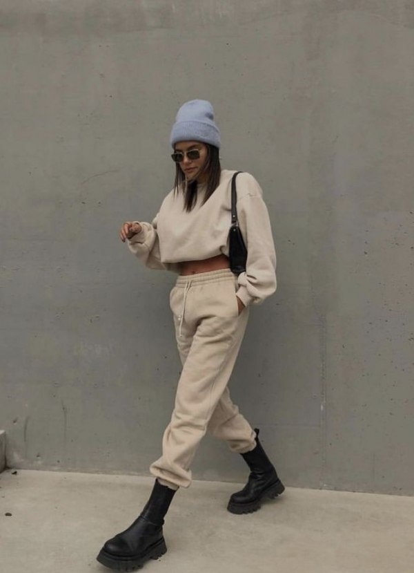 Когда-то этот удобный образ считался чуть ли не идеальным для субботнего утра. Блогеры с удовольствием показывали свои вариации на тему костюма из футера и грубых ботинок. Но сегодня так лучше не одеваться.