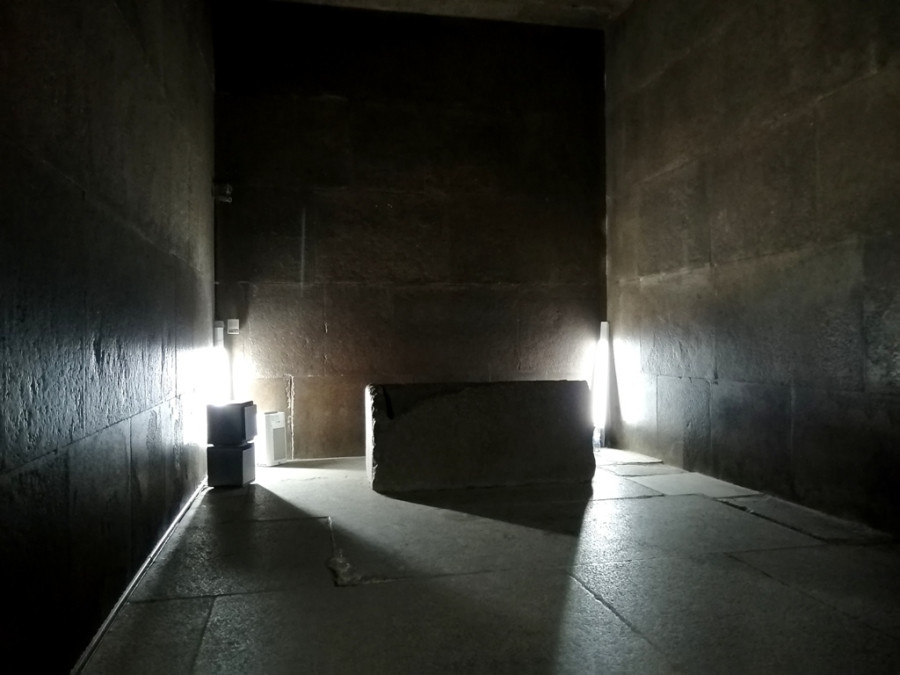 Так называемая камера царя. Но при строительстве выполняла роль канала гидролифта. Поскольку Они запустили туда воды Великой реки Нил, то и будем исходить из принципа работы именно гидролифта. После того как закончилось строительство подземных коммуникаций, в том числе и подвод шахты водовода к центру стройплощадки началось сооружение самой шахты Гидролифта. Размеры камеры лифт полностью совпадают с параметрами Камеры царя, то есть 10 метров на 5 метров. Все технологические колодцы, каналы подвода воды, сама шахта, заглушены и замурованы, во избежании случайного или намеренного запуска их в работу, что может привести к непредсказуемым последствиям, вплоть до разрушения элементов конструкции. Самая сложная конструкция это загрузочные ворота лифта. В лифт должны заплывать две баржи, груженные блоками. Примерные размеры барж – длинна 8 метров, ширина 2 метра, они вполне помещялись в столь просторный объем. Такая ширина баржи исходила из особенности конструкции входного портала в лифт.