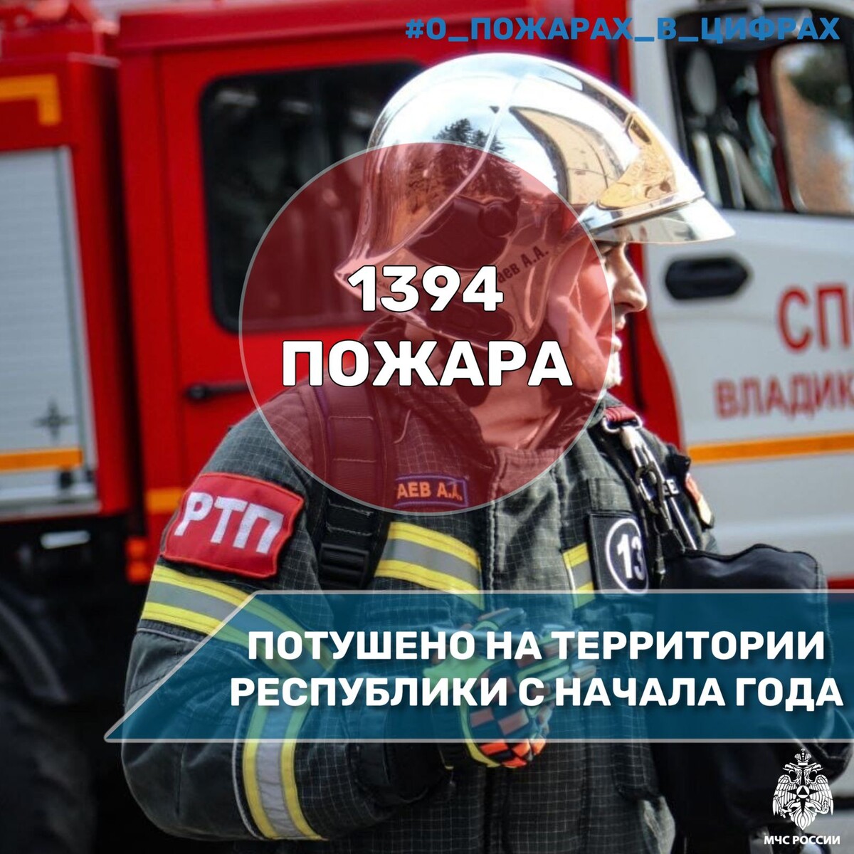 С начала 2024 года на территории Северной Осетии было зарегистрировано 1 394 пожара. На пожарах погибло 4 человека.