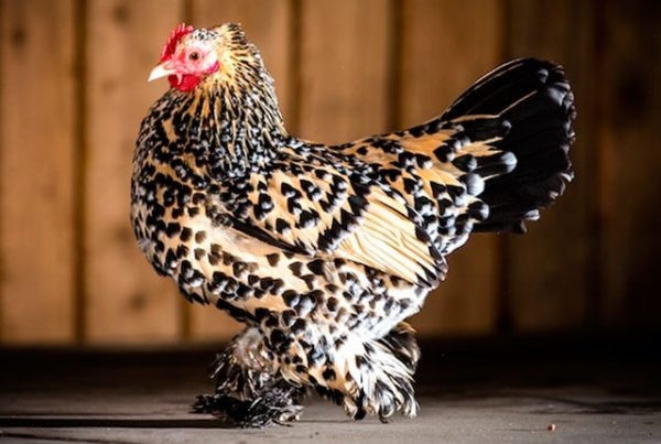 - Описание: Французская порода кур, известная своим необычным внешним видом (короткий хвост, длинные перья на ногах). Фавероли – хорошие несушки и мясные куры одновременно.