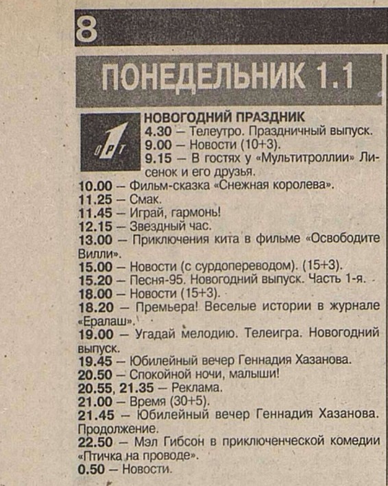 А в данной публикации давайте посмотрим, какие фильмы и мультфильмы показывали по нашему телевидению 1 января 1996 года.