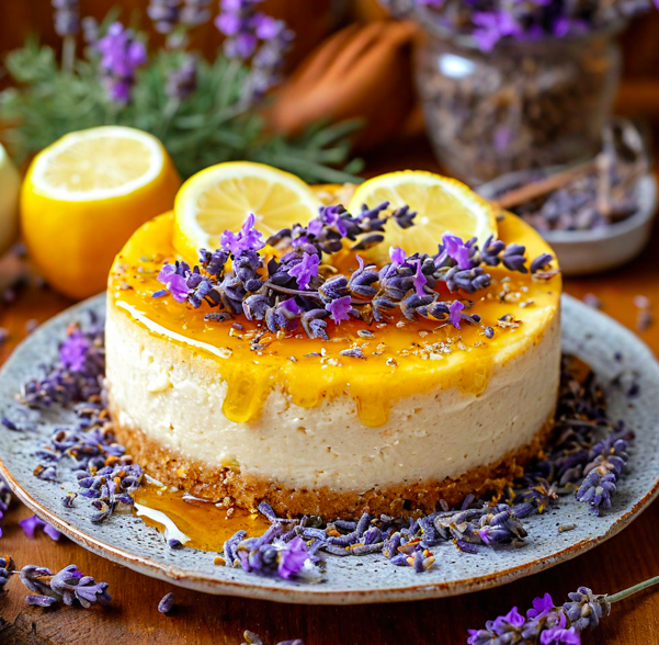 Лавандовый чизкейк с медово-лимонным соусом