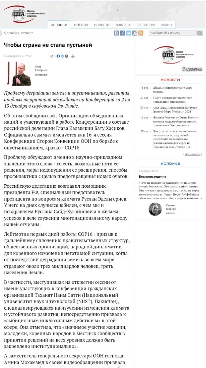 Посылы, задачи и опыт Конференции в Эр-Рияде, крупнейшего на сегодняшний день саммита ООН по вопросам землепользования, безусловно, будет полезен для Калмыкии и в целом для нашей страны.