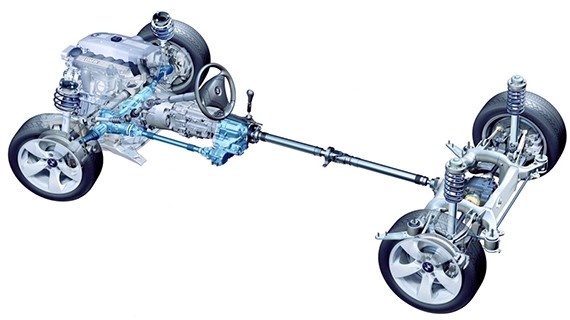 - Через карданный вал и дифференциал крутящий момент передается на ведущие колеса.