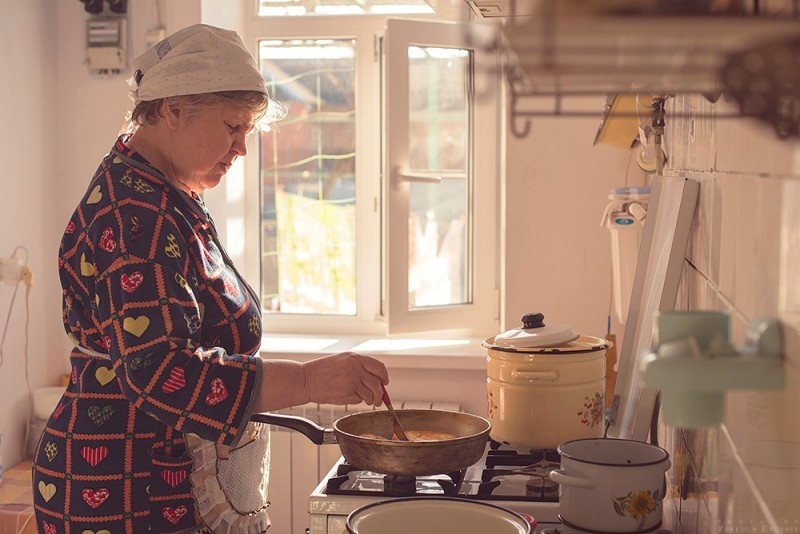 Маше шесть и она помогает бабушке, тем, что сидит за столом и наблюдает, что бабушка делает.