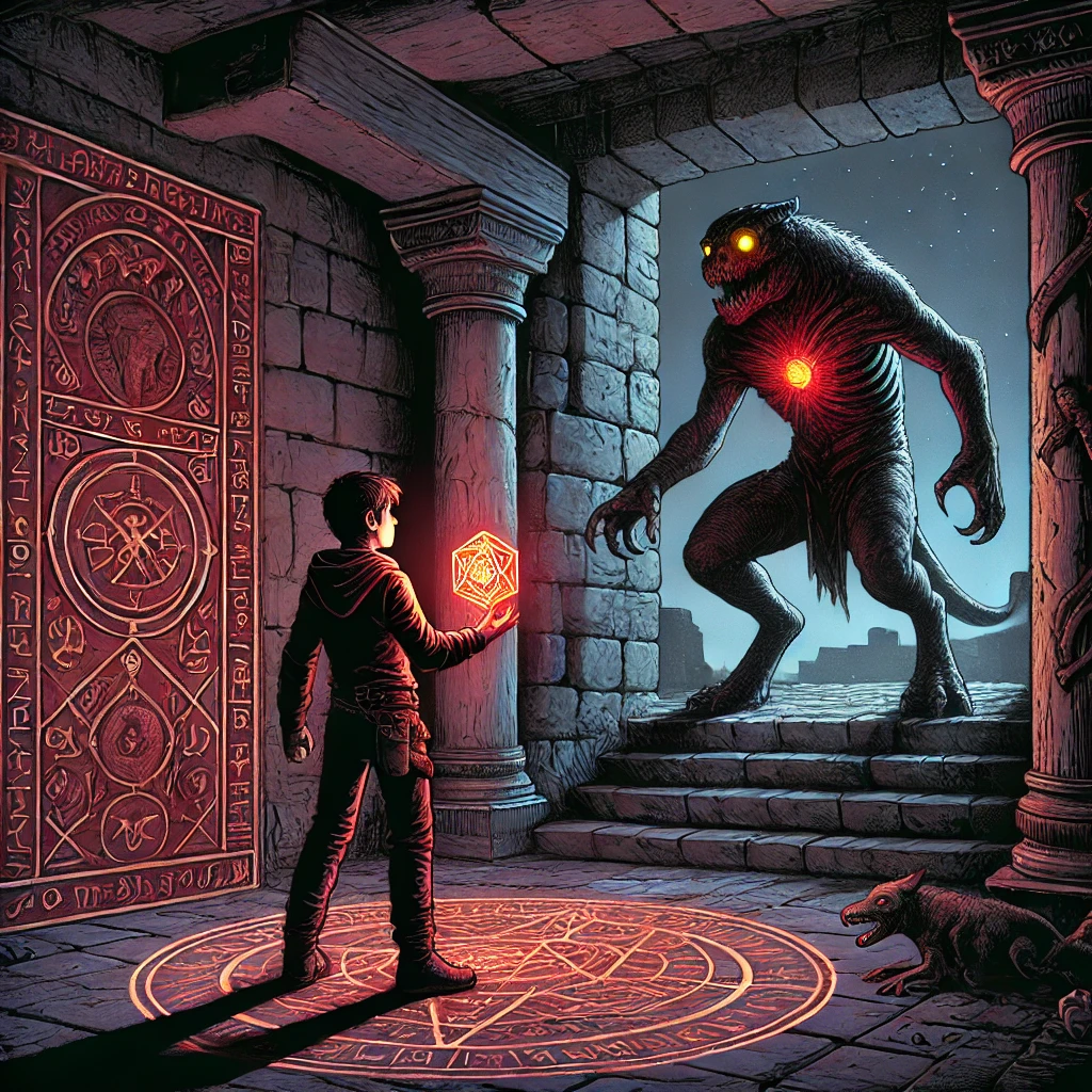 Наконец, он достиг башни. Дверь, если её можно было так назвать, была выбита, а внутри царила темнота. Реми вытащил кинжал, который всегда носил с собой, и медленно шагнул внутрь. Свет медальона озарил каменные стены, покрытые всё теми же символами, что он видел раньше.