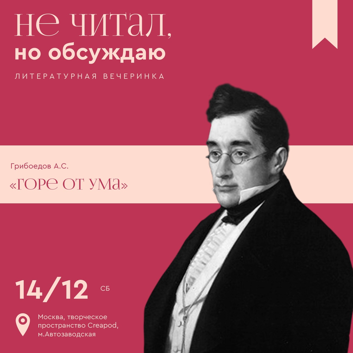 Встречаем декабрь🎄 с самой цитируемой классикой — «Горе от ума» А.С. Грибоедова! Мы уверены, что фраза из названия произведения не раз звучала в ваш адрес, ведь наши гости — умные, думающие и чувствующие люди (а кто еще согласится провести вечер субботы, обсуждаю русскую классику? 🤓). “Служить бы рад, прислуживаться тошно”, “Свежо предание, а верится с трудом”, “Блажен, кто верует” — фразы давно ушли в народ. На декабрьской встрече: ✨ Обсудим одиночество и конфликт с обществом в жизни и литературе. ✨ Разберем поведение Чацкого: так ли он прав или все-таки надо быть гибче? ✨ Подумаем, как в современном мире взаимодействовать с людьми, чьи взгляды вам чужды. ⏰ 14 декабря (суббота), 19:00 📍 2-ой Кожуховский проезд, 21/2, подъезд 1Н (м. Автозаводская). Творческое пространство Creapod 💰 1500 рублей Предварительная запись обязательна — t.me/litparties