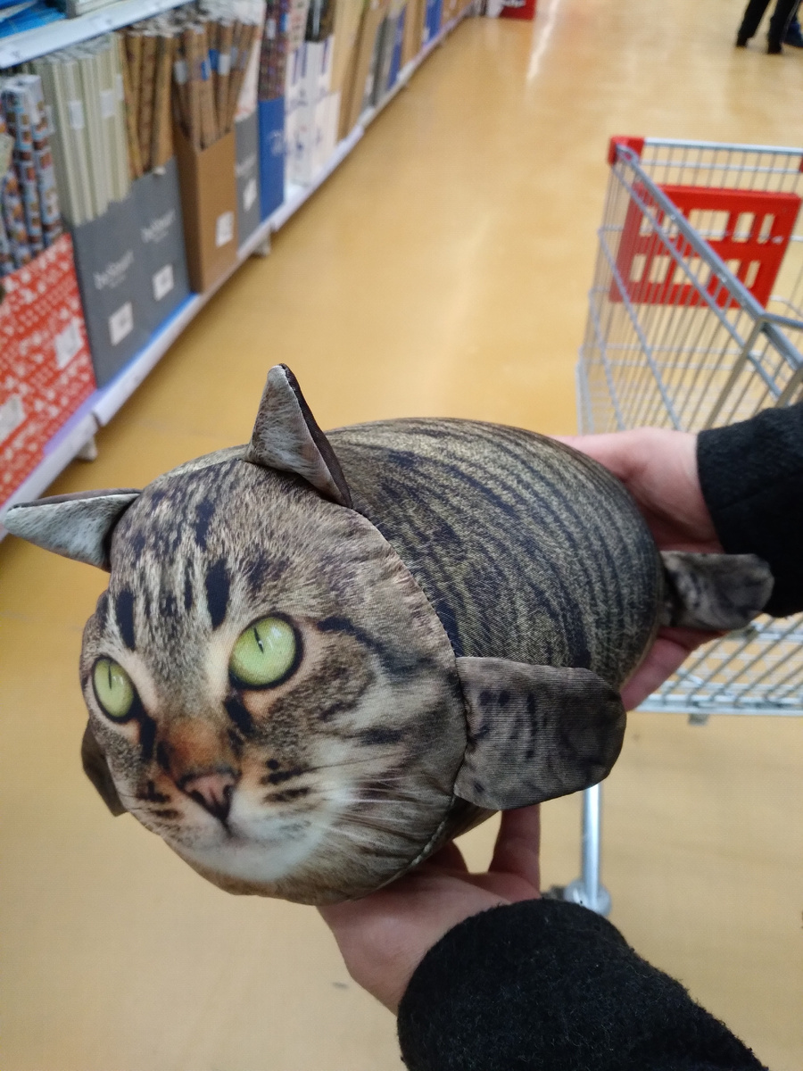 Здравствуйте. Вот такое чудо-юдо нашла в магазине. Как из изящного животного можно было сделать такую подушечку в виде маленького валика? А эти лапки и ушки? Они похожи на плавники. Хочется запустить это в аквариум, оно там бы плавало, плескалось и пускало пузыри😆. Ещё бы хвост приделать и получится кот-русал собственной персоной))). Или редкий вид кототюленя)) Для меня это трикотажное платье, хотя висело в кофтах. Трикотаж неплотный и мягкий, подол уголком повторяет узор. Суперское платье цвета хаки из тяжелого материала. Если рассматривать только верхнюю часть, то гимнастерка как есть. Непонятно почему шлевки так низко расположены, то ли на высокий рост платье рассчитано, то ли пояс положено завязать на бёдрах. Вот этот розовый пояс, что на фото, прилагался к платью. И состав радует. Зимняя куртка с кулиской на талии и капюшоном с меховой опушкой. Хорошая толстая куртка, но короткая. Жакет или лёгкая куртка из чёрного мягкого кожзама. Много в этот раз вот таких рубашек из плотно