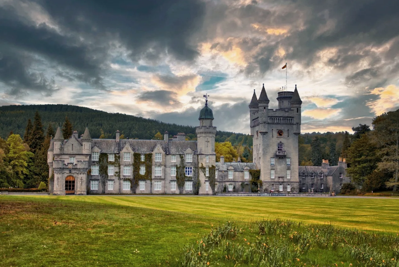 Замок Балморал (Balmoral Castle), расположенный в Абердиншире, Шотландия, является одним из самых знаменитых частных поместий британской королевской семьи. Построенный в викторианскую эпоху, он олицетворяет шотландский дух, архитектурное великолепие и многовековую связь монархии с этой частью Соединённого Королевства. Его история тесно связана с королевской династией и представляет собой яркий пример богатой традиции британской монархии. История Балморала начинается в XIV веке, когда на его месте находился охотничий домик, принадлежавший шотландской короне. Название "Балморал" происходит от гэльского *Baile Mhoireil*, что означает "прекрасное жилище". В XVII веке участок стал частной собственностью и несколько раз менял владельцев, пока в 1830-х годах не оказался в руках семьи Фаркухарсонов, местных землевладельцев. Поместье оставалось относительно скромным до тех пор, пока оно не привлекло внимание королевы Виктории и принца Альберта. В 1848 году королева Виктория и её супруг, принц А