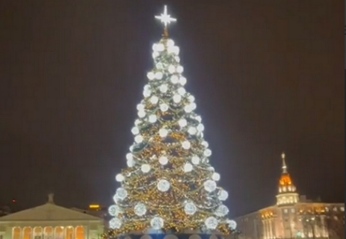Главная ель Воронежа на площади Ленина засверкала праздничными огнями