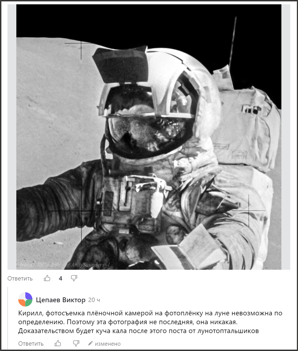 "Фотосъемка плёночной камерой на фотоплёнку на Луне невозможна по определению" (© Виктор Цепаев)