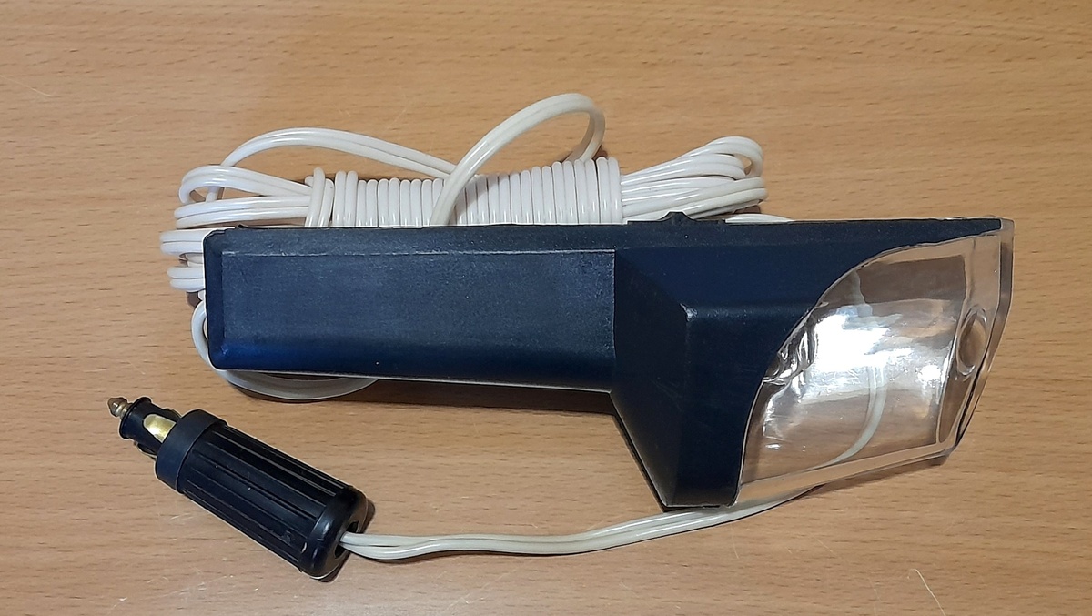 В комплекте с машиной никаких штатных аксессуаров не было - все пришлось собирать самому. самое легкое, наверное - это найти штатный переносной фонарь. В ИЖ-2126 на заводе штатно клали один из двух типов фонарей – ЛПА-3715, о котором тут и идет речь, и более известный «грибок» ПД-525 (также именуемый и ЛП-525, и ЛП-01-02). От «грибка» меня почему-то тошнит: какая-то неприятная конструкция, не знаю даже почему – сугубо субъективно... Поэтому выбрал другой вариант, более эстетический в моем понимании. И более исторически корректный, ибо «грибок» делал ОСВАР, а ЛПА-3715 – удмурты, как и сам автомобиль… Штатно фонарь ЛПА-3715 – со штекером под 12-вольтовую розетку старого стандарта, что в правом нижнем углу торпедо. Нашел новый, на Авито. Пока еще не редкость, найти нетрудно и недорого. Спроектирован в плане промдизайна фонарь неплохо, хотя изготовлен грубовато (но не похабно, признаюсь). С поликарбонатным стеклом сложной формы, с кнопкой включения.