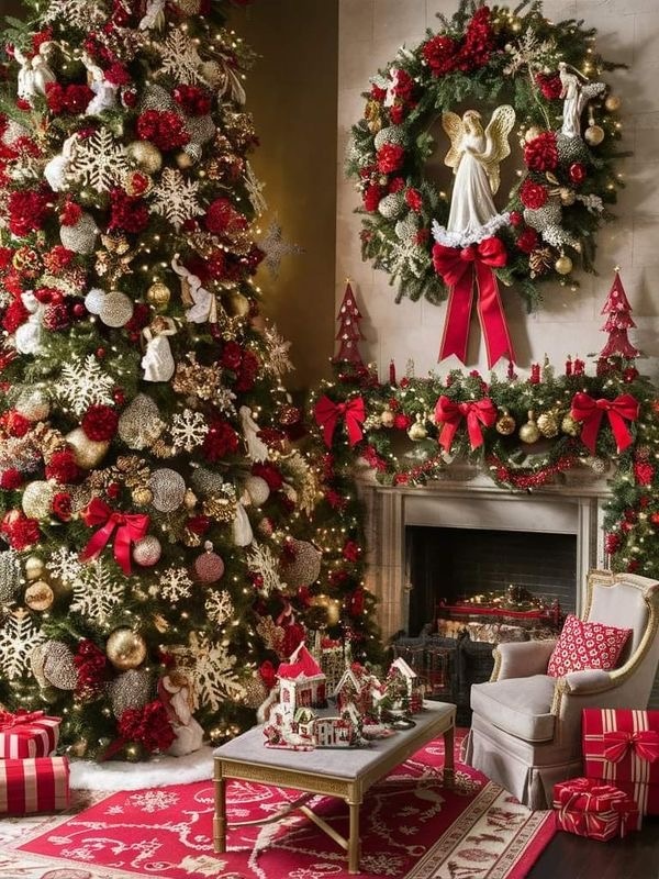 Квадратное сервировочное блюдо с ёлочкой сделано из фарфора. Размер 20*20 см. Ёлочка явно маловата. Посуда с ягодками тоже сделана из фарфора. Обеденная тарелка - 26,6 см, салатник - 480 мл.