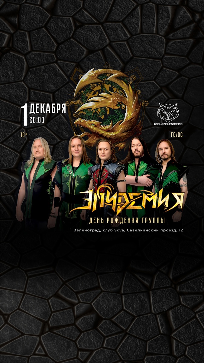 Евгений Егоров: «Не-е... Это имедж, это стиль. Мне жарко, но я в косухе. Но это до пары до времени. Друзья, во-первых, очень здорово, что мы здесь вместе с вами здесь в Зеленограде. Но вы наверняка следите за информацией в наших соц. сетях и наверняка знаете, что у нас в Москве двадцать первого декабря в клубе (...) отмечаем День Рождение в большом формате. И если есть возможность, будем очень рады видеть всех вас. Я, кстати, не случайно в шарфе сегодня вышел... А во-вторых, мы планируем сделать такой небольшой флешмоб, но, может, и большой... На концерт 21 декабря приходим с шарфами «Эпидемии».