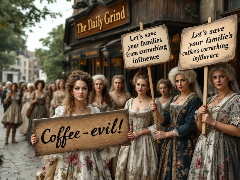 В XVII веке в Англии разгорелась необычная культурная война — между мужчинами-кофеманами и женщинами, которые видели в кофе угрозу моральным устоям. В центре этого конфликта оказалась анонимная «Петиция женщин против кофе», яркий сатирический памфлет, требовавший от мужчин отказаться от нового восточного напитка и вернуться к традиционному английскому пиву. Традиция пить кофе добралась до Англии из Османской империи и быстро прижилась. В стране, которая переживала революции и заговоры, кофейни превратились в социальные клубы, где обсуждали политику и идеи. К 1663 году только в Лондоне существовало более 80 таких заведений. Именно здесь зарождались не только дружеские беседы, но и потенциальные революционные движения. Женщинам же доступ в кофейни был закрыт, что, возможно, и спровоцировало их протест. В памфлете, скорее всего написанном мужчинами-сатириками, кофе обвиняли в упадке английских кавалеров. Женщины жаловались, что: Итогом петиции был призыв вернуться к английским корням — т