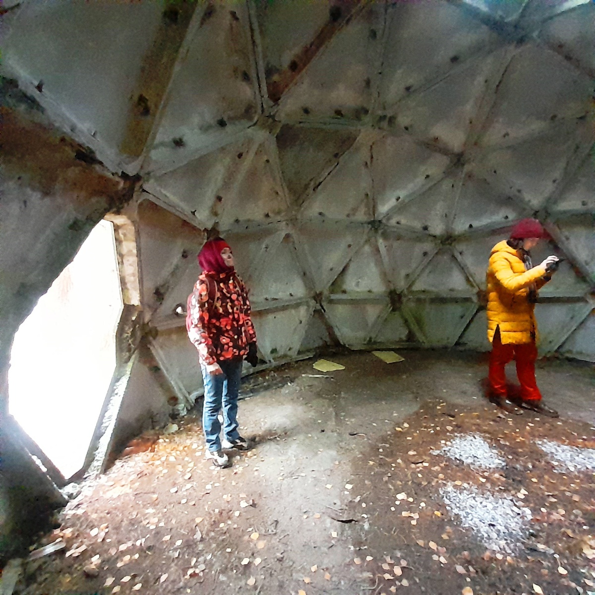 Осенью мы отправились прогуляться по Карельскому перешейку, чтоб посмотреть интересные заброшенные места, спрятанные в лесу. Целью было погулять по территории бывшего полигона испытаний ударных электромагнитных воздействий. У него есть действующая охраняемая часть, куда мы соваться и не стали, а есть заброшенная часть, где вполне можно погулять. Нас ждало много интересного - огромный бассейн для испытания подводных лодок, заброшенный бетонный бункер в лесу, а еще необычные железобетонные шары, которые напоминали фильмы про инопланетян. Смотрите здесь отчет о нашей прогулке! Сначала расскажу, как мы туда добирались. Из Петербурга на поезде "Ласточка" доехали до Зеленогорска. Это заняло 20 минут. Потом сели на автобус, идущий в сторону поселка "Озерки". Вышли на остановке "22 километр". И оттуда углубились в лес. А лес там красивый - идти по нему довольно приятно. Были первые заморозки. Нам удалось набрать в лесу замерзших грибов - моховиков, лисичек, рядовок. А вот и первая наша цел