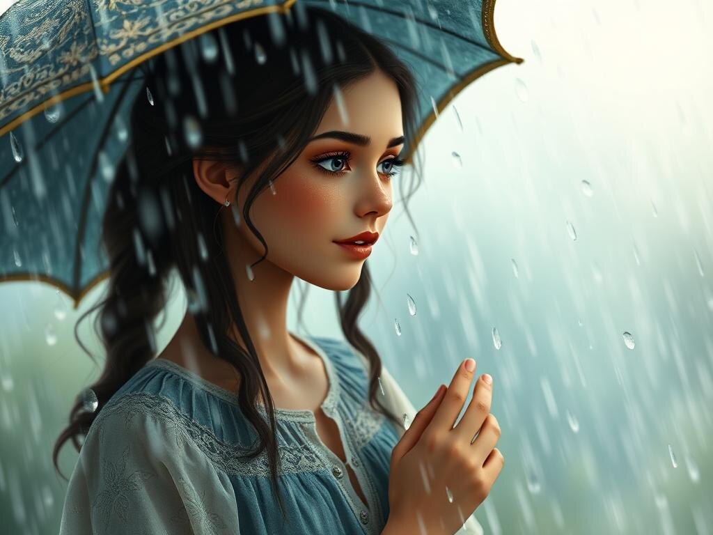 Осень. Город. Дождь. Я проснулась от тихого стука капель по подоконнику. Такое редкое утро – когда воздух настолько чист, что хочется *выбежать и закричать от счастья*. Резиновые сапоги – мой талисман свободы. Яркие, желтые, как солнце среди серой питерской осени. Надела их – и мир становится другим. Огромным. Бесконечным. Шаг за шагом по мокрому асфальту. Лужи – как зеркала настроения. Отражают небо, деревья, мое лицо. Капли барабанят по куртке – тихо-тихо, будто наигрывают мелодию только для меня. Парк. Старая скамейка. Дерево укрывает от дождя, но я не хочу укрываться. Я – часть этой стихии. Закрываю глаза. Вдох-выдох. Детство врывается внезапно – как порыв ветра. Мы – босоногие девчонки. Прыгаем в лужах. Визжим. Смеемся. Свобода – наш единственный наряд. — Вы часто здесь бываете? Голос – как прикосновение. Рядом мужчина. Седые виски. Теплая улыбка. Зонт – как щит от обыденности. — Люблю дождь, — говорю честно. Он понимающе кивает. И начинает историю. О жизни. О любви. О том, как ва