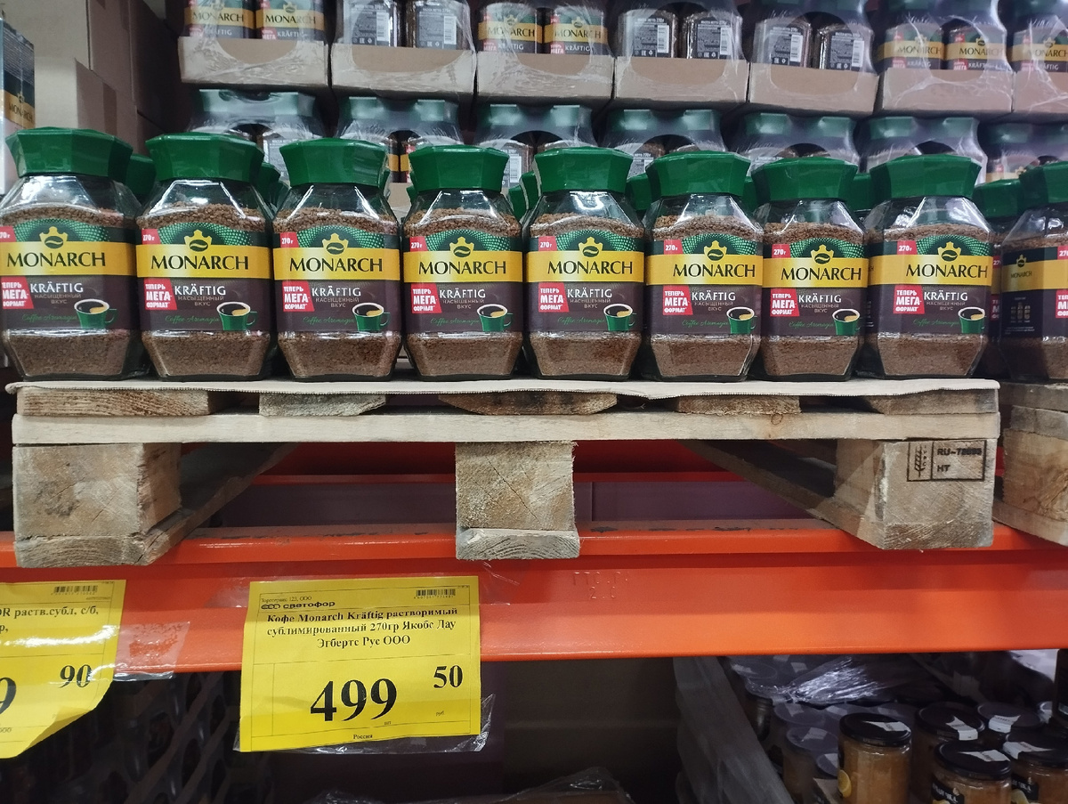 Что же касается кофе выше, то вполне себе обычный по вкусу, хорошо растворяется в кипятке, нет лишней горечи или привкуса каких-либо ароматизаторов. Стоит банка 499 рублей, только в ней аж 270 гр, что заметно больше, чем в упаковках по такой же цене в супермаркете. И нет, тратится кофе в обычном режиме, не нужно класть его больше, чтобы появился хоть какой-то вкус и аромат.