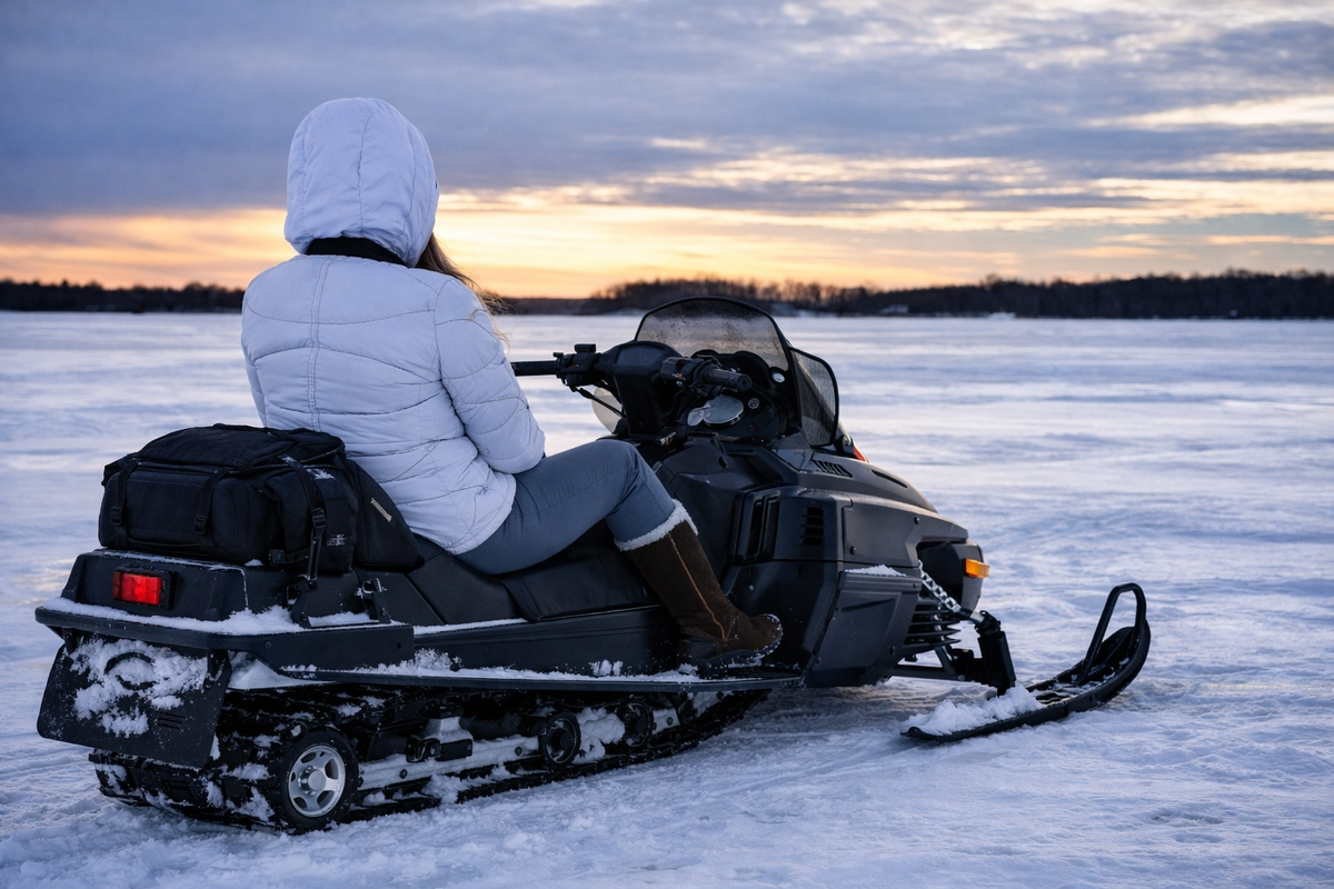 Что нам остаётся? Ровная, припорошённая снежком, гладь водоёмов, по которой можно погонять с ветерком в режиме “высоко сижу, далеко гляжу”. Помимо чисто спортивного интереса, снегоход на “твёрдой воде” ещё и утилитарное транспортное средство для рыбаков, обрастающих со временем таким количеством экипировки, которое на себе не унести.