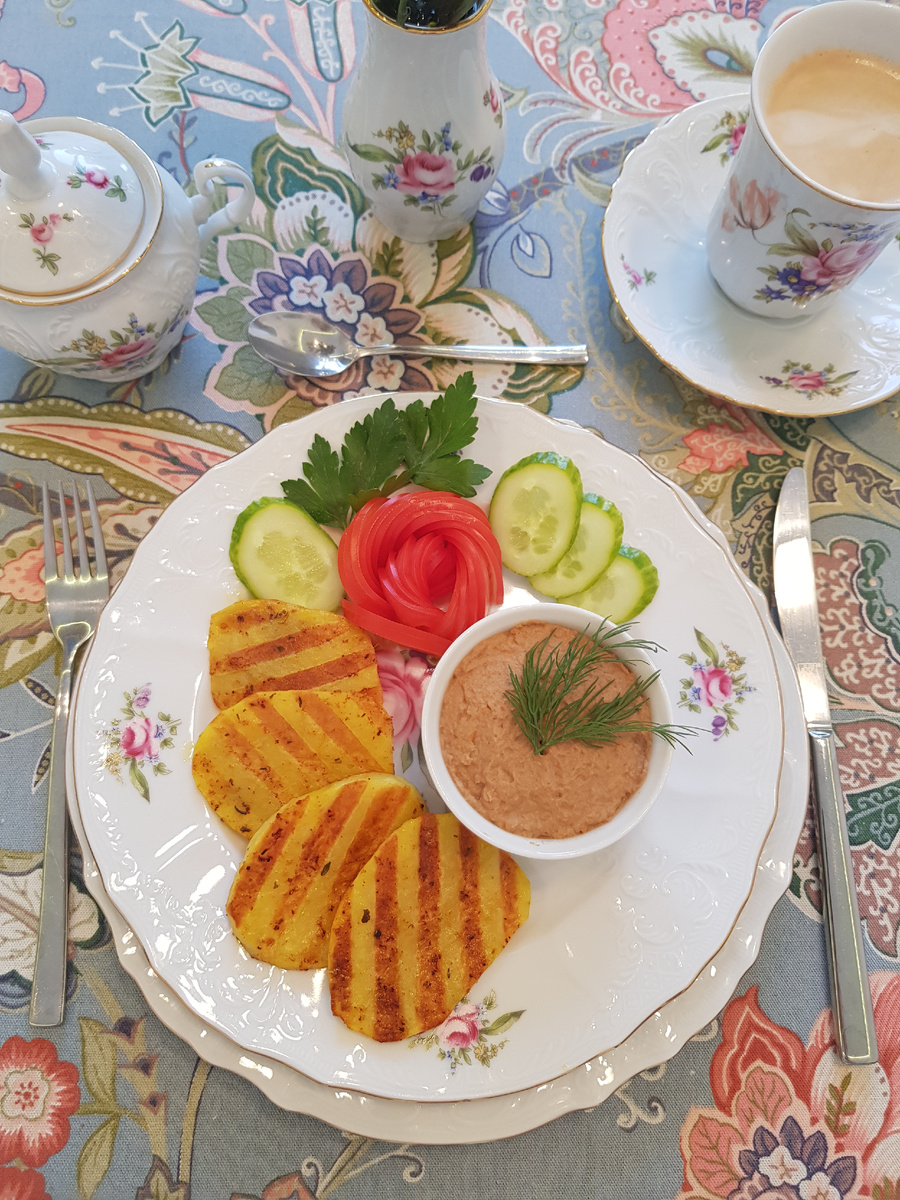 Доброе утро, дорогие друзья! Сегодня я представляю вашему вниманию вкусный и праздничный рецепт паштета из говядины. Для приготовления нам понадобятся: 500 грамм тушёной говядины с бульоном, 200 грамм репчатого лука, 200 грамм моркови, 50 грамм сливочного масла, 1/2 чайной ложки соли, 1 столовая ложка подсолнечного масла, чёрный свежемолотый перец. Приготовление: говядину потушить и остудить заранее: порезать кусочками, обжарить на небольшом количестве подсолнечного масла, посолить, поперчить чёрным перцем, добавить 100 грамм воды, накрыть крышкой и тушить 90 минут на слабом огне. Нарезать крупной соломкой лук и морковь. На растительном масле обжарить лук. Добавить морковь. Посолить, поперчить, накрыть крышкой и тушить 15 минут на среднем огне. Мясо с бульоном перемолоть с помощью блендера. Бульон добавлять постепенно. Выложить в блендер тушёные овощи и сливочное масло. Перемолоть их вместе с мясом. Готовый паштет попробовать, если требуется, посолить и перемешать. Разложить паштет по
