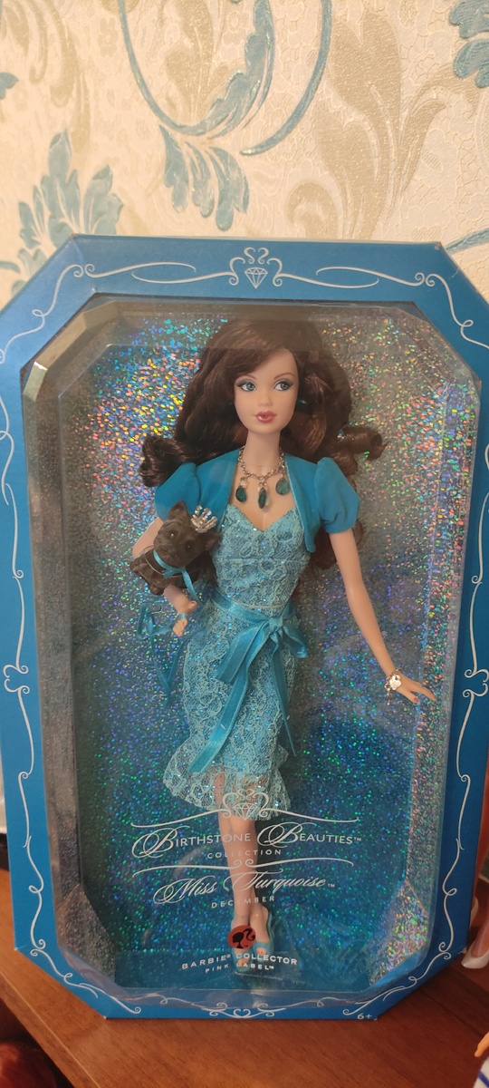 Barbie Birthstone Beauties Miss Turquoise December. Следующий мой подарочек это куколка Барби на молде Штеффи. Это первая моя Штеффи в коллекции , и пока что единственная. Куколку я присмотрела давно, но цена на нее не самая дешёвая , поэтому с покупкой откладывала. Куколка очень красивая. Тело у Штеффи модельное. Пересаживать пока не планирую, хотя донор есть. В последнее время заметила, что не очень хочу гибридить кукол. И они у меня находятся в первозданном виде, на родных телах. А коробка с донорами лежит без дела, наверное на тот случай если куплю отдельно головушку. Штеффи приехала ко мне не одна. У нее есть чудесный пёсик. Обычно я не очень люблю кукольных питомцев, и они переезжают к младшей дочке. А вот собачку Штеффи и хрюшку Милли ,я решила оставить у себя. Красотка Штеффи постепенно осваивается на новом месте и знакомится жителями коллекции.😁