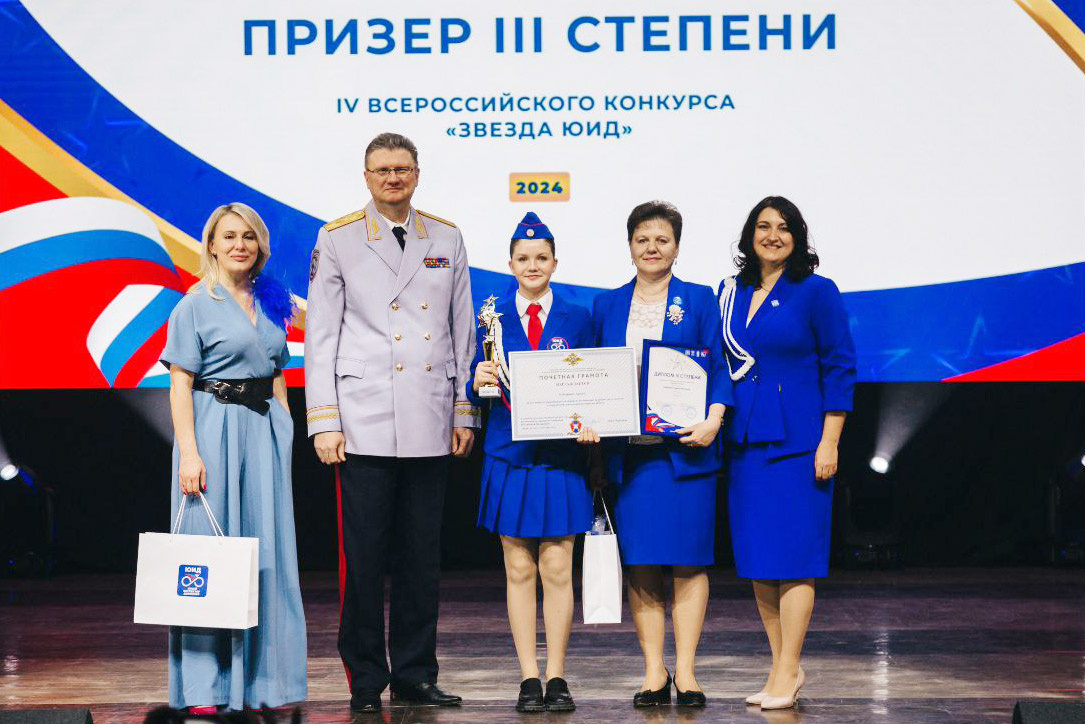 Активистка движения ЮИД из Кунгура Арина Бобырина стала призером Всероссийского конкурса Награждение победителей и лауреатов конкурса прошло в Москве в рамках Всероссийского форума «Я выбираю ЮИД» - площадки для идей и инициатив, которая объединила представителей из 75 регионов нашей страны. На грандиозное мероприятие была приглашена Арина вместе с мамой Натальей Валерьевной и педагогом - наставником, представителем Общественного совета при территориальном отделе полиции Курочкиной Надеждой. В Конкурсе «Звезда ЮИД» приняли участие 560 школьников, активно участвующих в движении ЮИД, с разных регионов Российской Федерации. Ученица 7 класса средней общеобразовательной школы №1 города Кунгура, показала достойный результат. Арина выдержала сильнейшую конкуренцию, по результатам всех выполненных заданий она заняла 3 место и получила звание «Звезда ЮИД 2024». В торжественной обстановке, на большой сцене концертного зала «Измайлово» заместитель руководителя российской Госавтоинспекции Олег Е