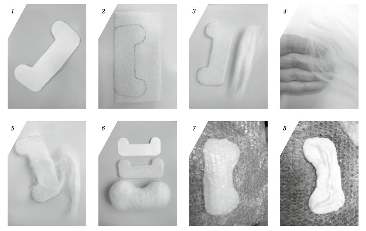 Анна Клейн (Диркс) – мастер по войлоковалянию из овечьей шерсти, автор украшений, игрушек, кукол и картин Немцы в России тоже носили валенки. В поволжских колониях валяльщик был обычно русским. А вот в Сибири валяльщиками были уже и немцы. Некоторые передавали свое искусство детям, а те – своим детям. В этом мастер-классе будет показано, как можно сделать валенки из шерсти методом мокрого валяния. Созданные своими руками мини-валенки могут стать рождественской елочной игрушкой или теплой обувью для куклы. Возьмем непряденую овечью шерсть, например, тонкую мериносовую цвета «Суровый», кусочек пупырчатой упаковочной пленки, непромокаемый материал для шаблона, полотенце, миску с теплой водой и мыло. Шерсть можно купить в специализированных магазинах или заказать в интернете. Лист бумаги складываем пополам, рисуем форму, добавляем припуск на усадку около 30%, разворачиваем. Должна получиться одна деталь с общим голенищем. Шаблон вырезаем, например, из подложки под ламинат. (Ф