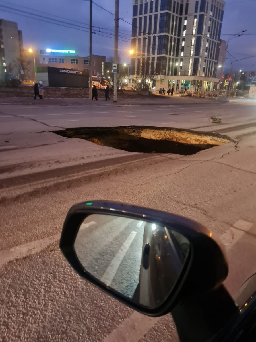 В Казани на пересечении улиц Фучика и Кул Гали образовалась яма, движение на участке ограничено