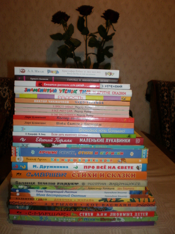 Ноябрь был очень неровным - дети болели, ходили как попало. Часто я просто зависала... какую книгу ни возьми - хочется, чтоб прочли и услышали ее все. В общем, с горем пополам, с душевными терзаниями читали всякое-разное. Стопка выглядит внушительно, но во многих объемных книгах мы просто читаем-перечитываем отдельные вещи. А чуть ли не треть стопки просто промахнули за полчаса - там книги по одному предложению на страницу