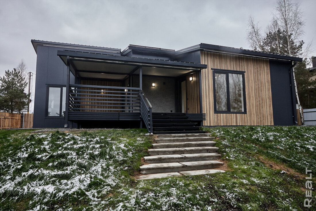 Создавать дома как инженерное изделие на специальном заводе предложило конструкторское бюро EnCata. Прототип возвели в 2020 году – с плоской крышей, металлическим фасадом, панорамными окнами и магнитными обоями в интерьере. В концепции одной из главных целей было создание завода со всем необходимым оборудованием для производства таких домов. И вот идея вышла на этап реализации – в технопарке « Великий камень» построен завод и отлажены технологические процессы, позволяющие выпускать домокомплекты конвейерным способом. Их производством занимается отдельное подразделение Cuby. И этот дом в Колодищах уже не прототип, а серийное изделие.