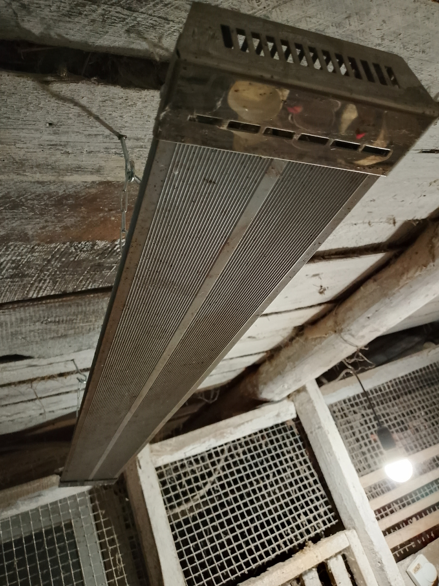 Все хотят чтобы куры зимой неслись так же не плохо как и летом.Но что для этого сделать? Один из способов это комфортная температура в курятнике. В начале моего увлечения курами я тоже начала искать способ обогрева курятника. Сначала это были инфракрасные лампы.Но куры их часто портили,так как лампа обычно висела низко,чтобы куры могли погреться под ней.У этих ламп беда,выскакивают из цоколя,куры слетают с крошеста и задевают лампу. Потом я насмотрела инфракрасный обогреватель.У меня курятник примерно 5 на 6.Мне этот обогреватель установили под потолком,повесили на цепочках,все сделал электрик как положено.И, о счастье!Пошло тепло.Но когда я посмотрела на счётчик как он истерически замигал, моя радость исчезла.И я решила что буду включать обогрев только в сильные морозы. Греет этот обогреватель хорошо,но и электричество мотает тоже хорошо.Я никогда на полную мощность не выставляла,стоит на 15 градусов. Не пробовала включать на целые сутки,обычно только на ночь в сильный мороз. Включала