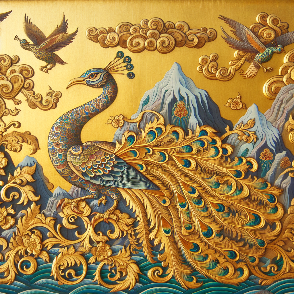 Была такая птица – золотой павлин. Его хохолок* был на девять частей, на девять косичек разделен. Хвост его был длиной в девяносто девять кулашей. Он, плавно раскачиваясь, ходил, подобно звенящей стали, протяжно пел.